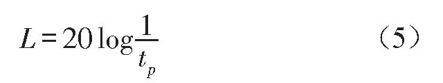 根据某电容器生产企业实际加工的电容器产品可知, 电容器壳体厚度为2 mm, 隔声腔中空气层厚度为24 mm, 电容器油的声阻抗为1.5×106, 电容器底面声阻为4.5×107, 空气声阻抗为428.5, 空气中的声速为340 m/s。根据式 (1) 至式 (5) 求解得到:电容器单底面的隔声量为32.44 d B, 而电容器底部隔声腔的隔声量为49.2 d B, 如果仅仅是考虑声波透射的情况下, 电容器底部隔声腔比电容器单底面隔声效果增大了16.76 d B。